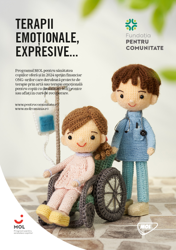 Reading Time: 3 minuteMOL România și Fundația Pentru Comunitate au selectat pentru finanțare 18 proiecte de terapie emoțională, terapie prin artă și intervenții psihosociale, care vor contribui la îmbunătățirea calității vieții a 858 de copii cu dizabilități, boli cronice sau care se află în curs de recuperare după afecțiuni grave. Selecția s-a făcut în cadrul celei de-a 16-a ediții a Programului MOL pentru sănătatea copiilor.