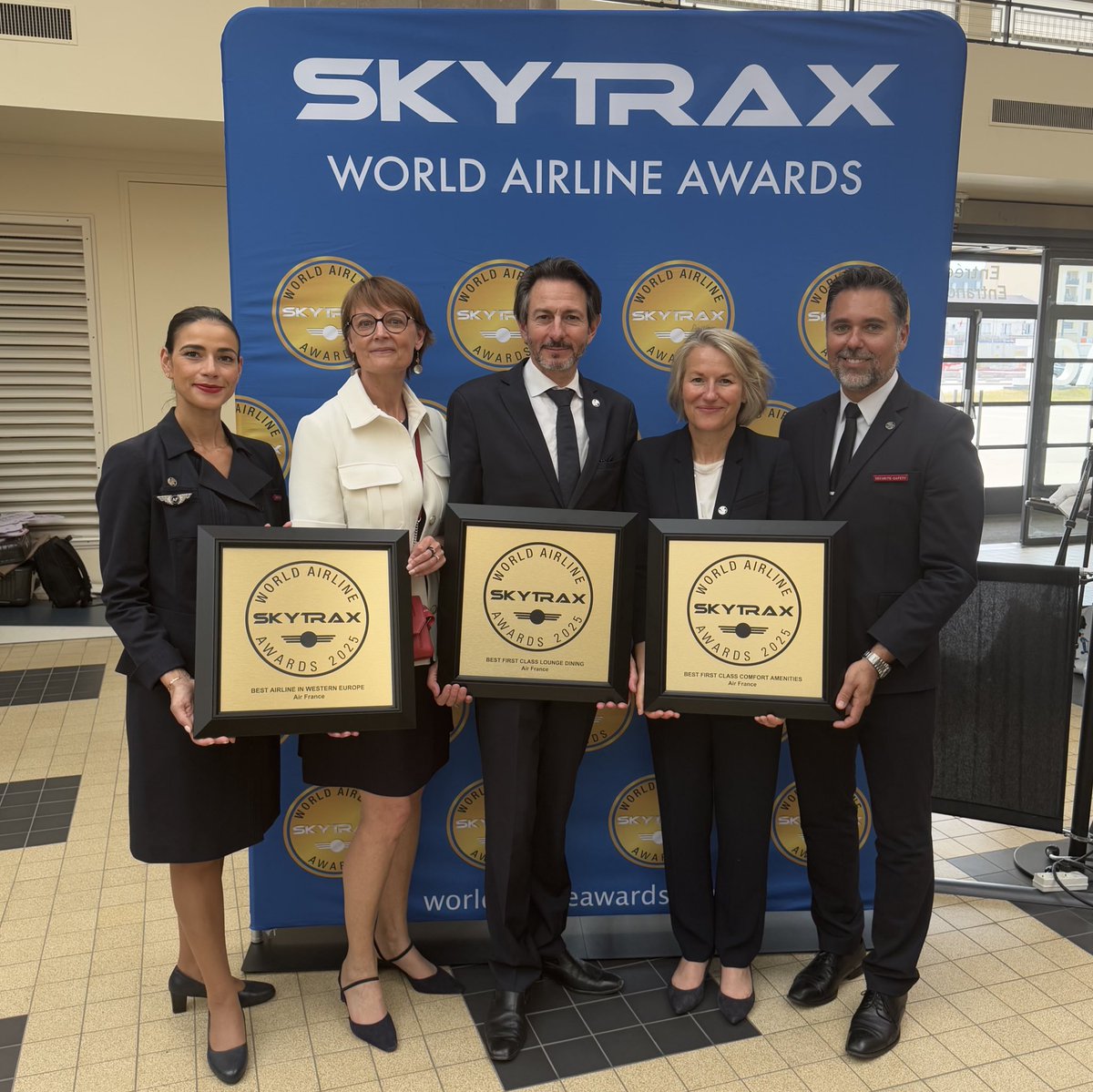 Air France a fost votată cea mai bună companie aeriană din regiunea Europei de Vest și a obținut primul loc la două categorii dedicate ofertei exclusive La Première: cea mai bună experiență gastronomică într-un lounge de First Class și cel mai bun kit de confort oferit în această cabină. Air France își continuă ascensiunea în clasamentul mondial, urcând un loc față de 2024 – de pe poziția 9 pe poziția 8 la nivel global.