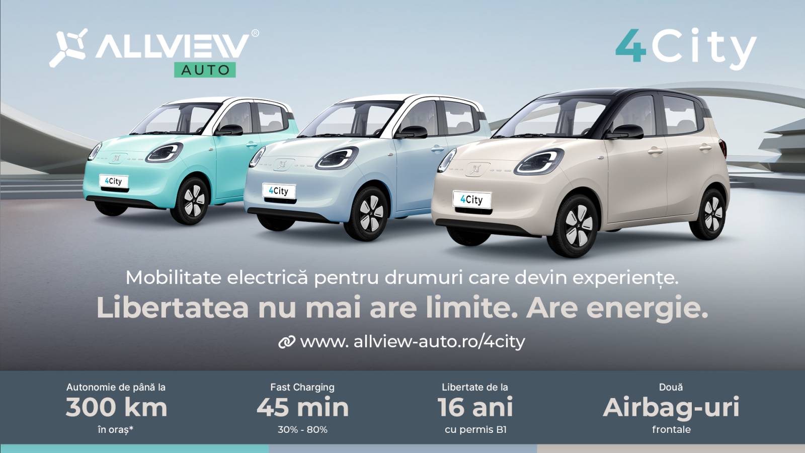 „Prin lansarea modelului 4City continuăm dezvoltarea portofoliului Allview Auto și facem încă un pas important în direcția mobilității electrice urbane. 4City a fost gândit ca o soluție modernă de mobilitate pentru oraș, dar și ca un vehicul care inspiră încredere. Pentru mulți părinți, ideea ca adolescenții lor să înceapă să conducă este un moment important, iar siguranța devine esențială. De aceea am integrat elemente precum caroseria complet metalică, airbag-urile frontale și sistemele de stabilitate, pentru a oferi mai multă protecție și liniște la fiecare drum”, a declarat Adrian Vișan, Director General Adjunct al companiei Visual EV Distribution S.R.L.