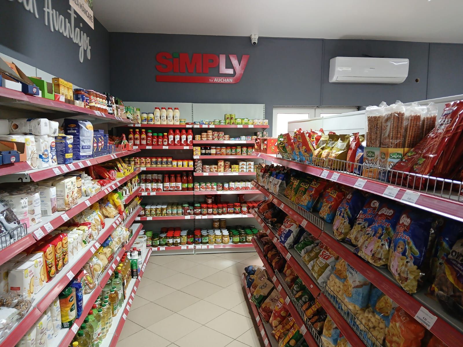 Magazinele Simply by Auchan au suprafețe cuprinse între 50 și 280 mp și pun la dispoziția clienților o gamă variată de până la 4000 de articole la prețuri accesibile, de la fructe și legume, produse congelate și băcănie, până la articole marca proprie Auchan, dar și produse nealimentare, precum cosmetice, produse pentru curățenie și îngrijirea animalelor de companie.