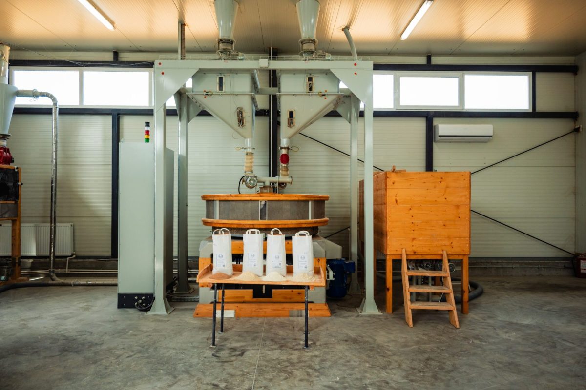Moara completă a costat peste 200.000 de euro și cuprinde absolut tot, de la moara propriu-zisă, buncăr de cereale, cernător și cântar semi-automat, cu care putem ambala la 5 și 25 kg, cantități perfecte atât pentru utilizatorul de acasă, cât și pentru brutăriile artizanale.