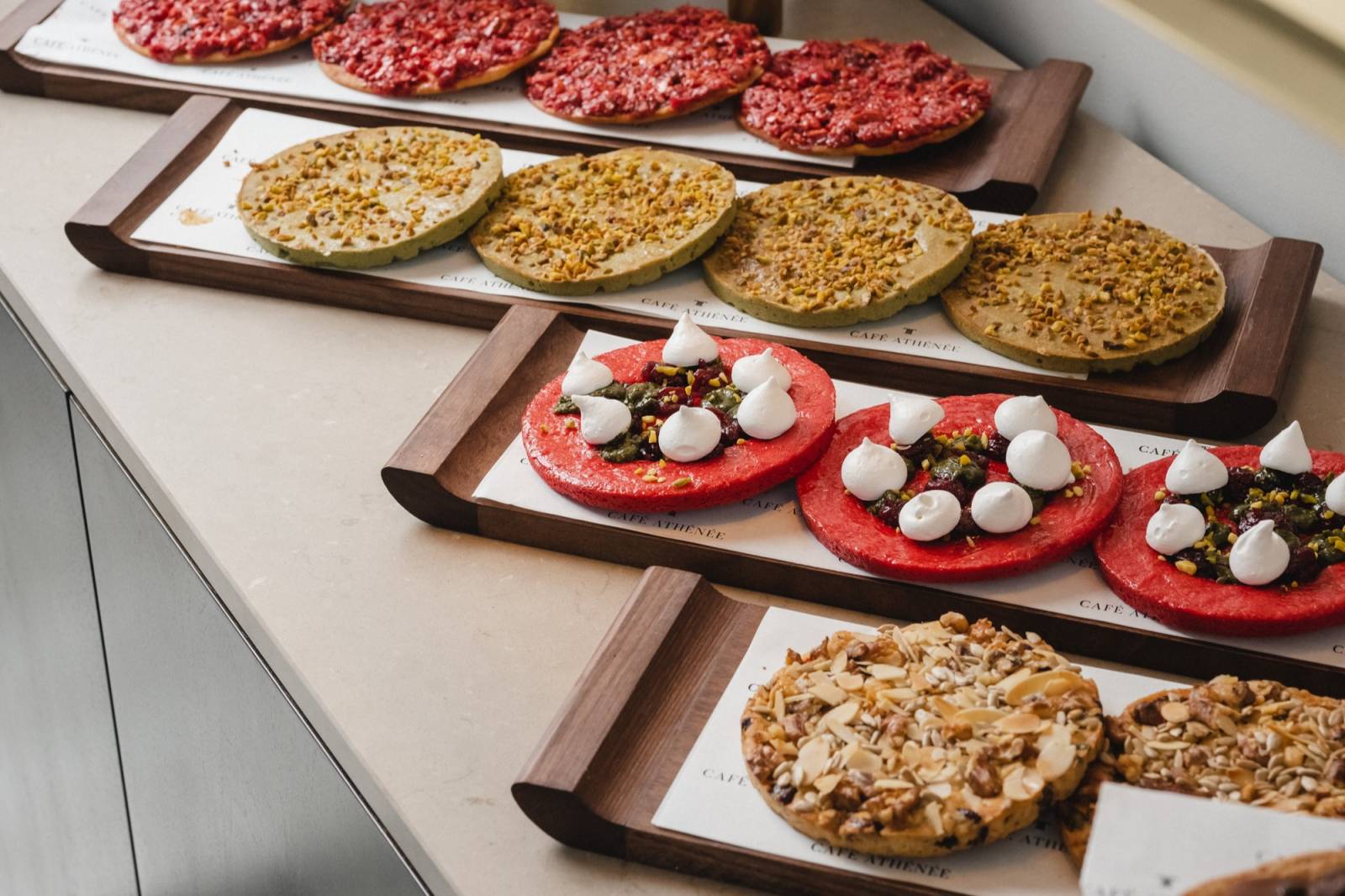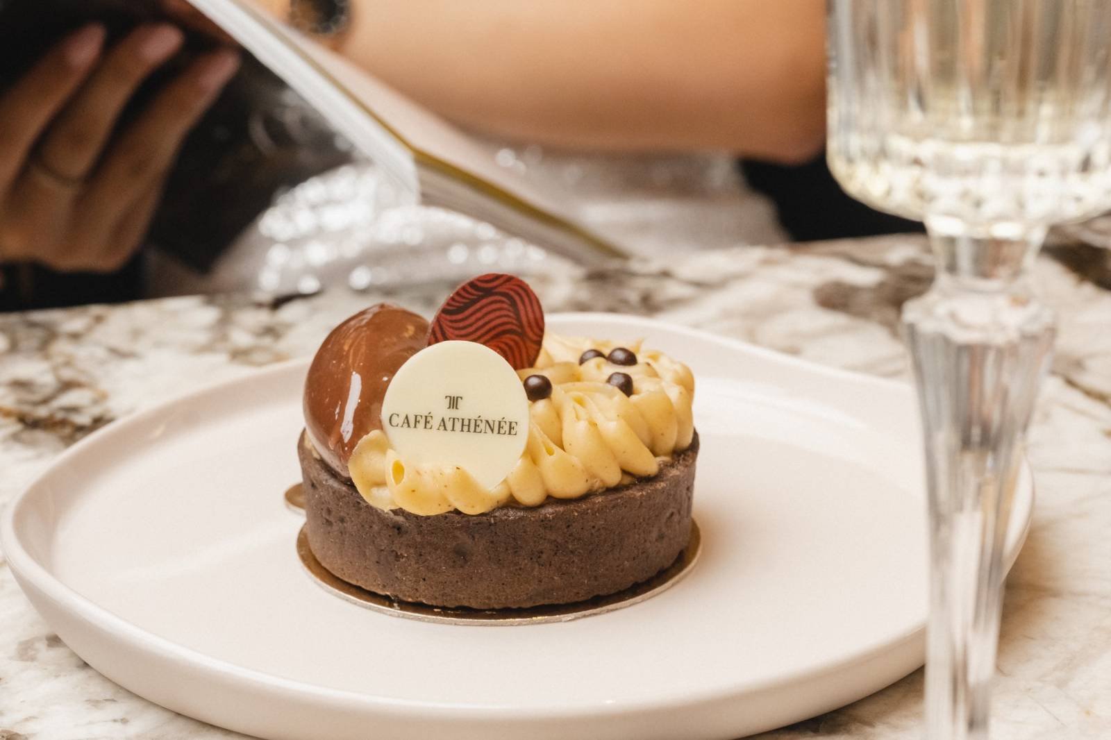 Meniul Café Athénée oferă o experiență culinară rafinată pentru toate momentele zilei. Începând de dimineața, oaspeții pot savura opțiuni clasice de mic dejun sau brunch, precum ouă poșate, tartine, croissante sau caviar, continuând cu preparate delicioase care pot fi comandate pe întreg parcursul zilei și desigur deserturile sub semnătura Café Athénée. Toate opțiunile culinare pot fi însoțite de cafele și ceaiuri speciale, de cocktailuri, vinuri sau spumante atent selecționate.