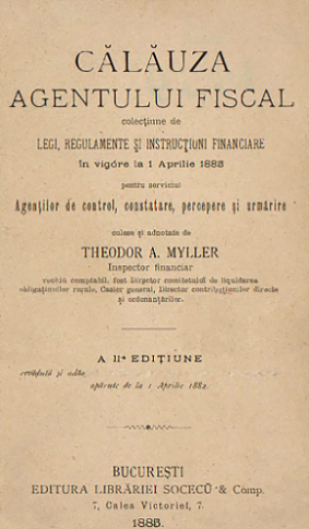 Așa cum este acest volum apărut în anul 1885 la Editura Librăriei Socecu & Comp. din București și intitulată simplu „Călăuza agentului fiscal”.