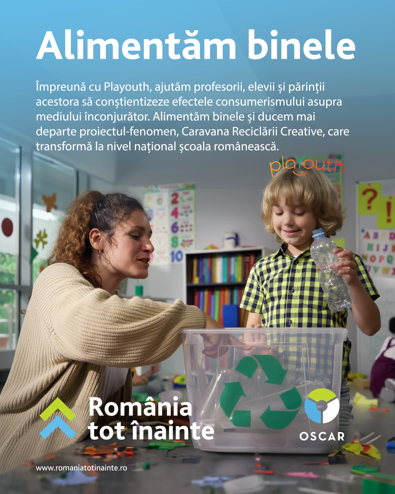Caravana Reciclării Sustenabile este un proiect național dedicat cadrelor didactice și elevilor din învățământul preuniversitar, care încurajează reciclarea creativă a deșeurilor și conștientizarea efectelor consumerismului asupra mediului înconjurător. După două ediții, campania a ajuns la aproximativ 135.000 de beneficiari indirecți și a dezvoltat hub-uri de creativitate și sustenabilitate în 12 județe din țară – Călărași, Giurgiu, Brașov și Sibiu (în 2023) și Sălaj, Bistrița Năsăud, Arad, Timiș, Satu Mare, Maramureș, Cluj și Bihor (în 2024).