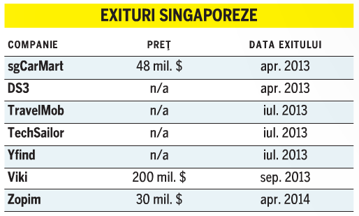 De cele mai multe ori, tinerii care isi doreau sa porneasca un start-up erau certati sau chiar renegati de familie pentru indrazneala de a-si pierde timpul cu astfel de ocupatii, in loc sa aleaga varianta unui loc de munca sigur si bine platit. Insa exiturile de succes din ultimii ani (Viki – exit de 200 milioane de dolari, Carmart – exit de 48 milioane de dolari sau Zopim – exit de 30 milioane de dolari) si alte companii gen RedMart sau Carousell care au strans finantari de zeci de milioane de dolari au schimbat perceptia singaporezilor despre start-up-uri si potentialul financiar din spatele acestora.