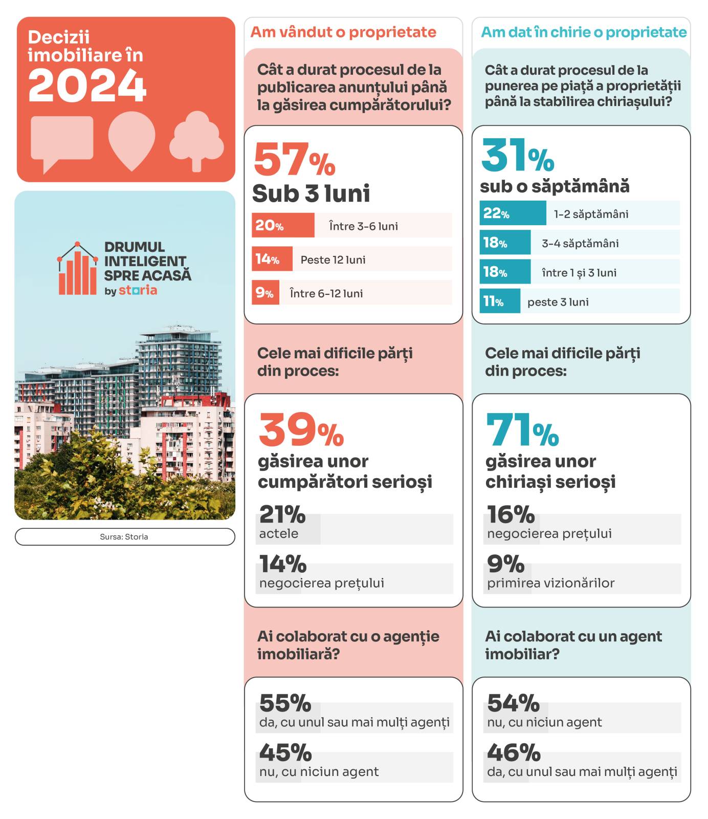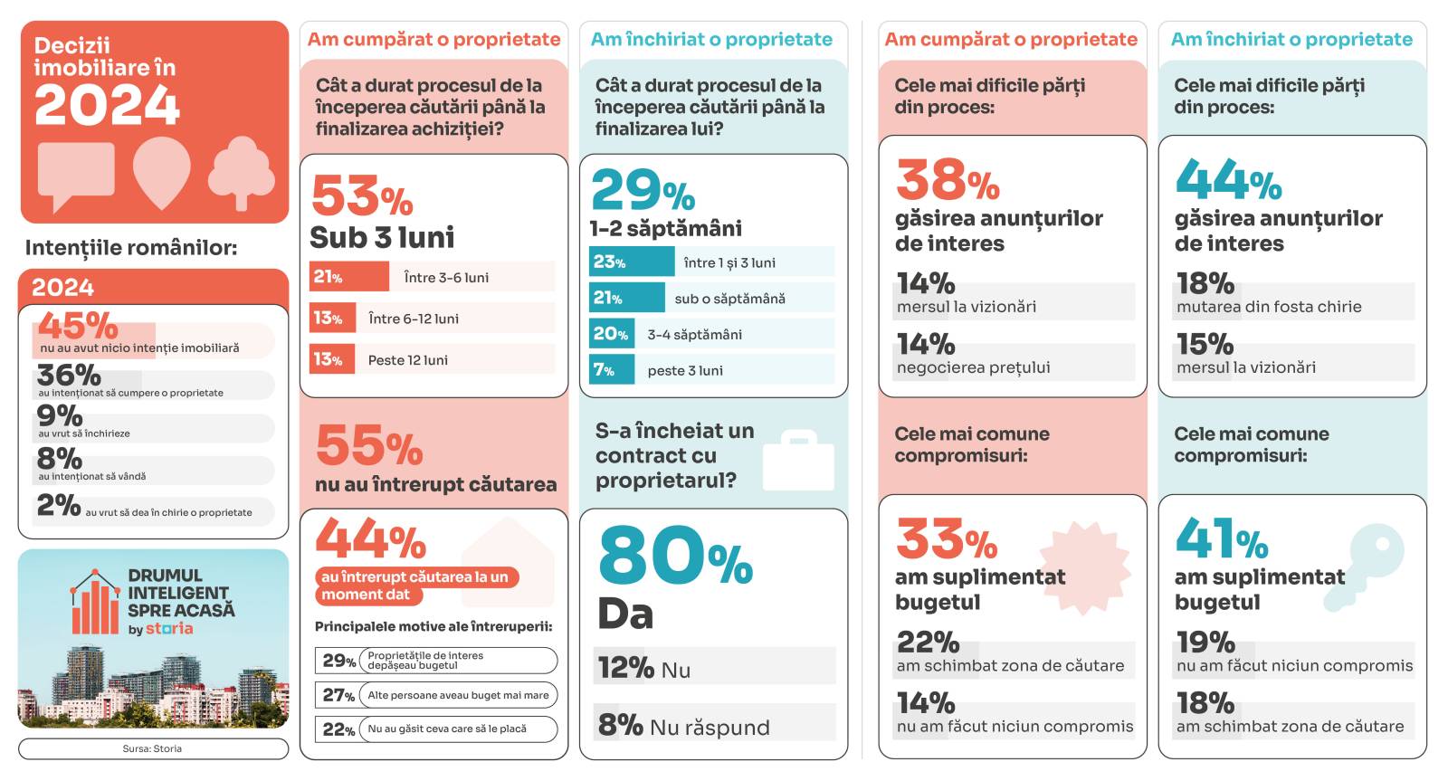 Analiza a fost realizată de Storia – platforma de imobiliare lansată de OLX, ca parte din inițiativa „Drumul inteligent spre acasă”, prin care brandul își propune să contribuie la transparentizarea informațiilor necesare tuturor cumpărătorilor, chiriașilor, proprietarilor, agenților și dezvoltatorilor, cu scopul de a-i susține să ia decizii în cunoștință de cauză. Chestionarul a fost publicat pe Storia și OLX Imobiliare, în luna ianuarie 2025, iar răspunsurile au fost colectate de la 3529 respondenți.
