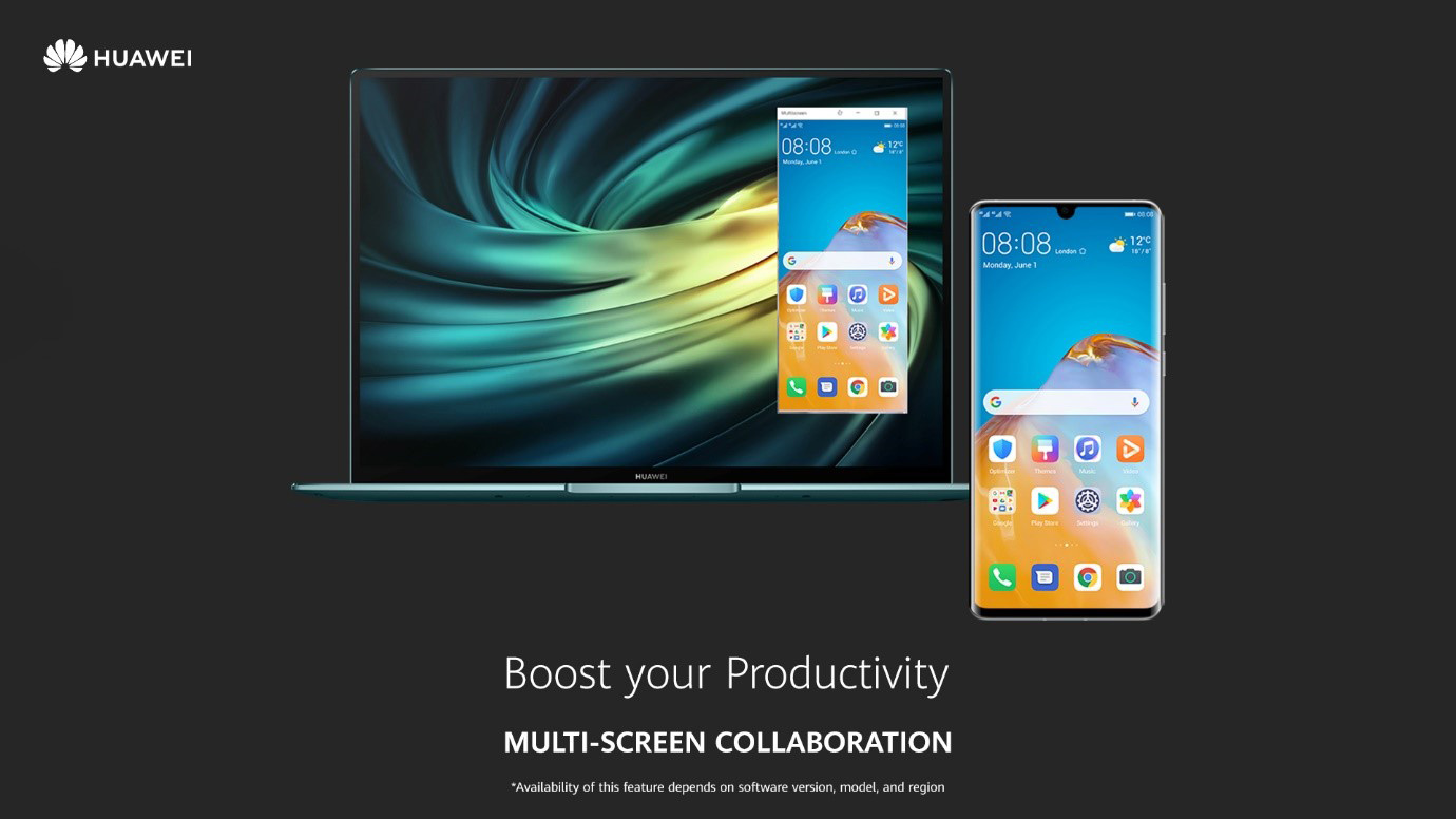 Funcția Multi-Screen Collaboration facilitează interconectarea între smartphone-urile și laptopurile HUAWEI, astfel încât ambele dispozitive pot fi utilizate pe un singur ecran. EMUI 10.1 aduce funcții îmbunătățite pentru această aplicație, precum preluarea apelurilor audio sau video pe laptop, folosirea aplicațiilor de pe laptop pentru a deschide fișiere și hyperlink-uri pe smartphone sau chiar folosirea conectivității celulare a telefonului pe computer, printr-o singură atingere.