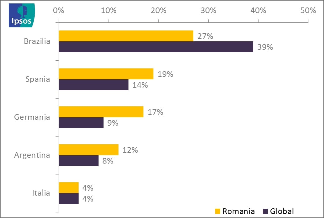 Studiul Ipsos arata ca una din nemultumirile legate de Campionatul Mondial de Fotbal este legata de accentul puternic pus pe sponsorizarea evenimentului de catre corporatii si mai putin pe aspecte legate de sport si sportivitate – nemultumire resimtita mai ales in randul tarilor dezvoltate sau al celor mai interesate de sport efectiv. Romania este preocupata in foarte mica masura de accentul pus pe corporatii (22%), comparativ cu media globala (31%) sau cu alte tari: Franta (50%), Marea Britanie (44%) sau Brazilia (60%).