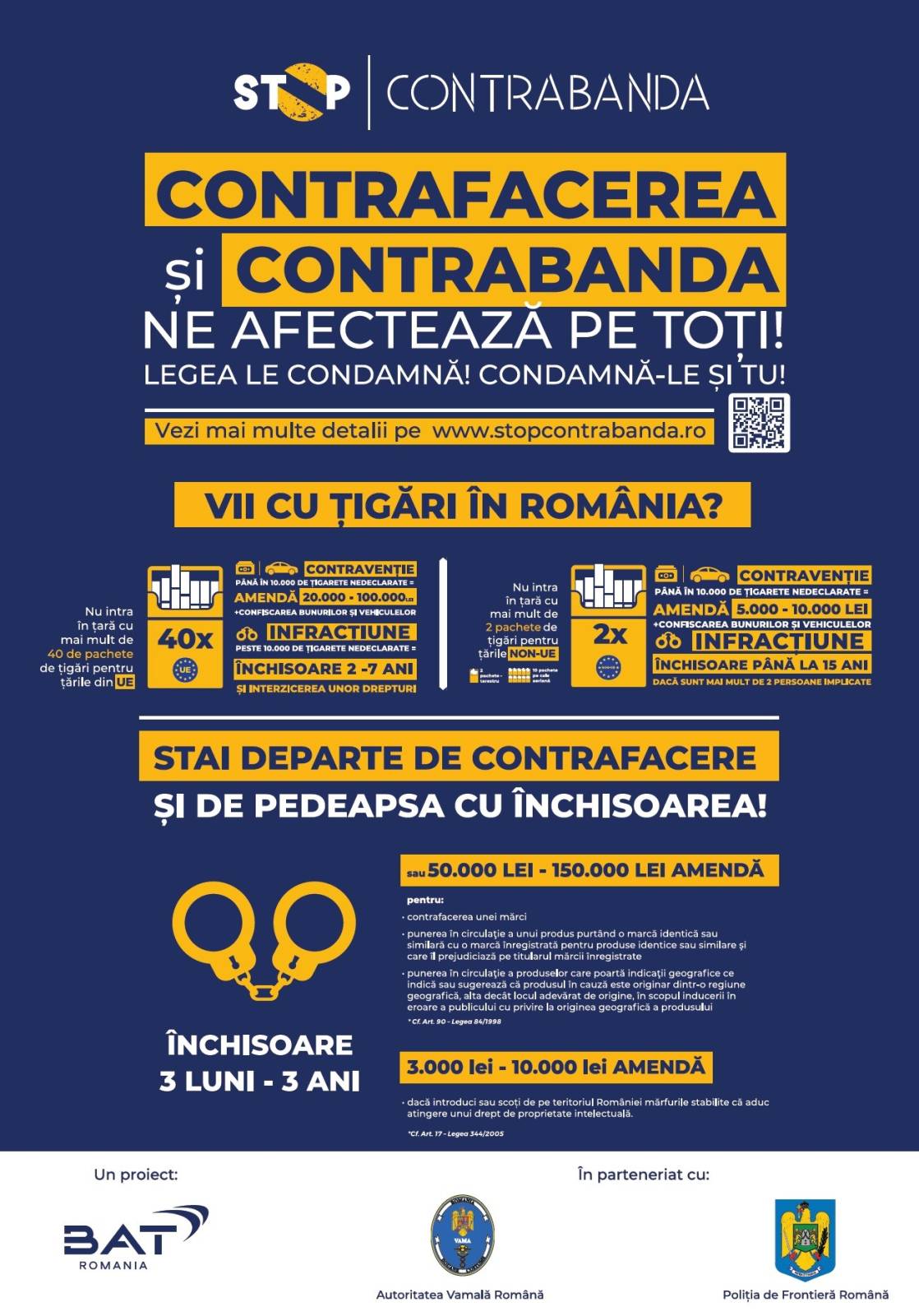 “În contextul în care datele la zi ale anului curent indică o sporire alarmantă a activității infracționale și diversificarea metodelor de introducere pe piață a produselor de contrabandă și contrafăcute, siguranța consumatorilor, frânarea fenomenelor rețelelor infracționale și asigurarea sustenabilității veniturilor la bugetul de stat trebuie să se regăsească cu prioritate pe agenda publică a țării. Credem cu tărie într-o informare continuă și corectă asupra riscurilor contrabandei și contrafacerii și continuăm să susținem eforturile autorităților în combaterea acestui fenomen cu implicații severe asupra dezvoltării economice și a siguranței comunităților”, declară Ileana Dumitru, Director juridic și relații publice, Aria Europa de Sud – Est din cadrul BAT.