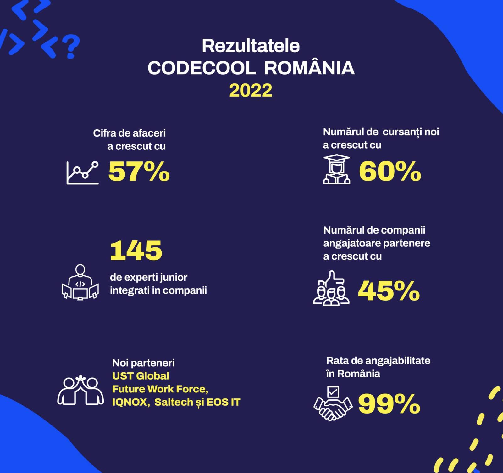 Cu această capacitate de a genera viitori candidați extrem de bine pregătiți, Codecool a înregistrat anul trecut în România o creștere de 60% a numărului de cursanți, iar la nivel European o creștere de 70%. La finalul studiilor, 145 dintre “codecoolerii” promoției 2022 au fost integrați în companiile partenere din România, cu 20% mai mulți decât în 2021.