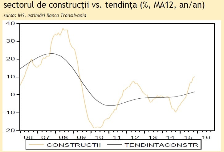 Raportat la noiembrie 2014, insa sectorul de constructii a consemnat un avans de 5,9%, evolutie determinata de cresterea componentelor reparatii curente si reparatii capitale (cu 15% an/an, respectiv cu 26.5% an/an). Pe de alta parte, lucrarile de constructii noi au scazut cu 2,6% an/an.