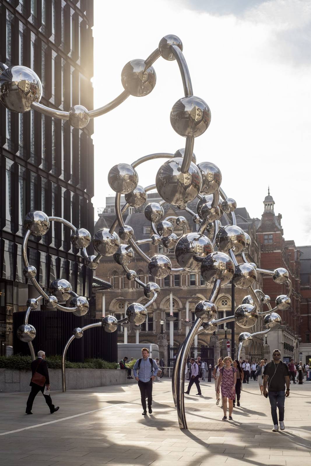 De curând a fost dezvelită, la Londra, o nouă sculptură realizată de artista japoneză Yayoi Kusama, cunoscută datorită bulinelor care apar obsesiv în lucrările sale încă din anii 1960. „Infinite Accumulation” este cea mai mare sculptură realizată de Yayoi Kusama și prima lucrare de artă publică care va fi expusă permanent în Londra. Aceasta este o lucrare formată dintr-o serie de sfere argintii, legate între ele care atinge o înălțime de 10 metri, o lățime de 12 metri și se întinde pe o lungime de aproape 100 de metri.