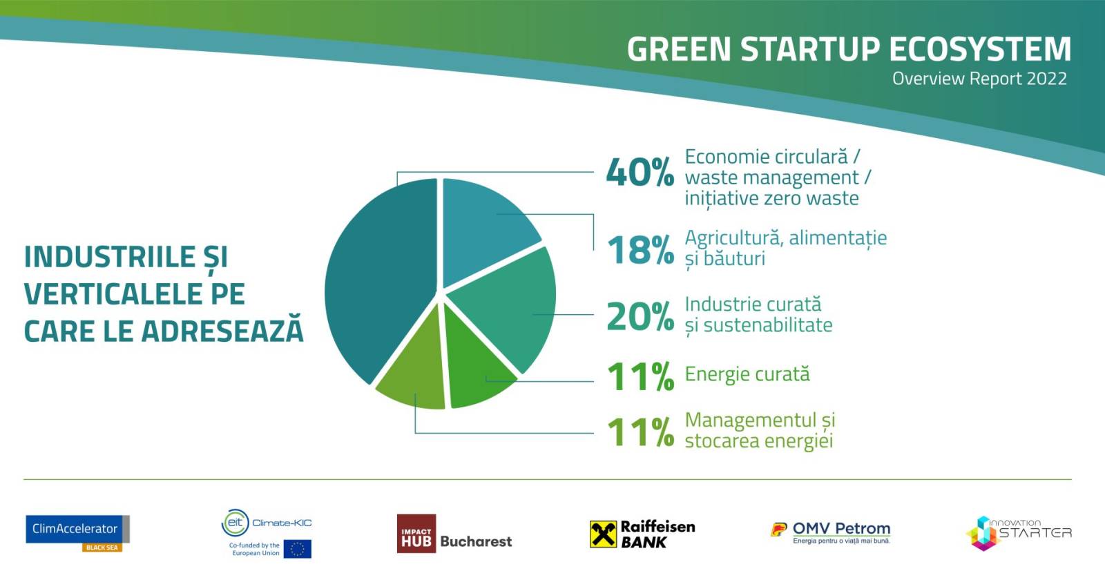 De departe, cel mai mare interes îl vedem în zona economiei circulare, a managementului deșeurilor, dar și a inițiativelor zero waste. Apoi, observăm un interes crescut pentru agricultură și industria alimentară, dar și domeniul energiei este reprezentat. În vestul Europei, startup-urile care atrag cele mai mari investiții sunt cele de captare din atmosferă a gazelor cu efect de seră și de stocare a energiei electrice, atât pentru mobilitate, cât și pentru uz casnic.