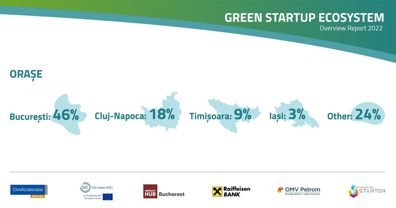 Ce am observat este că polii de dezvoltare a afacerilor verzi urmează trendul antreprenorial general, lista fiind condusă de startup-uri care activează în București și Cluj, urmate de Timișoara și Iași. Totodată, startup-urile care folosesc tehnologii avansate pentru a contribui la un viitor mai verde sunt încă minoritare în peisajul local.