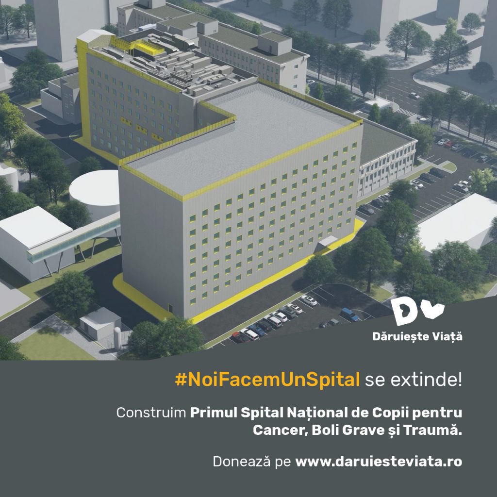 „#NoiFacemUnSpital este cel mai mare proiect de implicare socială, în acest moment în România – peste 350.000 de oameni și peste 4.000 de companii au pus o cărămidă la construcția Spitalului. Am ridicat deja prima clădire, lucrăm la instalații și interioare, astfel încât să fie funcțională la finalul anului următor. Aici, copiii bolnavi de cancer vor putea primi tratament multidisciplinar, la standardele Europei de Vest. Însă, în războiul cu bolile necruțătoare, toți copiii au nevoie de aliați puternici. De aceea am decis să extindem proiectul cu o nouă clădire astfel încât toți copiii care se internează la Spitalul Marie Curie să aibă acces la același standard de tratament. Pentru aceasta avem nevoie de implicarea oamenilor și a companiilor. Pe site puteți deveni fondatorul acestui Spital”, spune Oana Gheorghiu, fondatoare Dăruiește Viață.