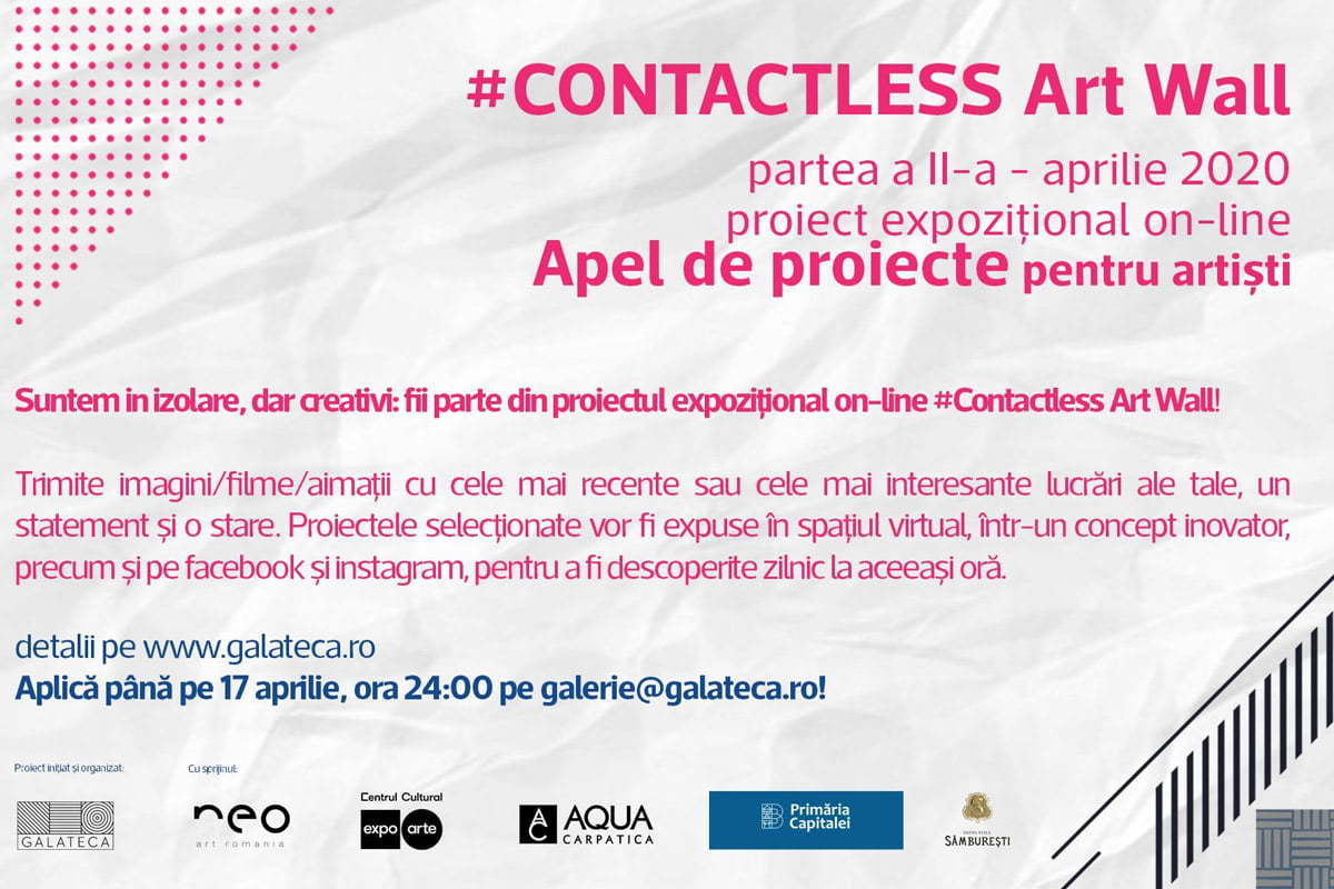 Astfel, partea a doua a proiectului, #Contactless art wall, începe cu un apel de proiecte pentru artiști, care se va încheia pe 17 aprilie, la ora 24.