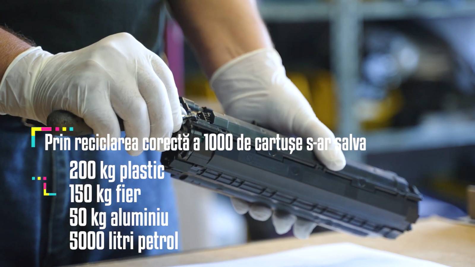 Prin reciclarea corectă a 1000 de cartușe s-ar salva 200 de kilograme de plastic, 150 de kilograme fier, 50 kilograme aluminiu și 5000 de litri de petrol.