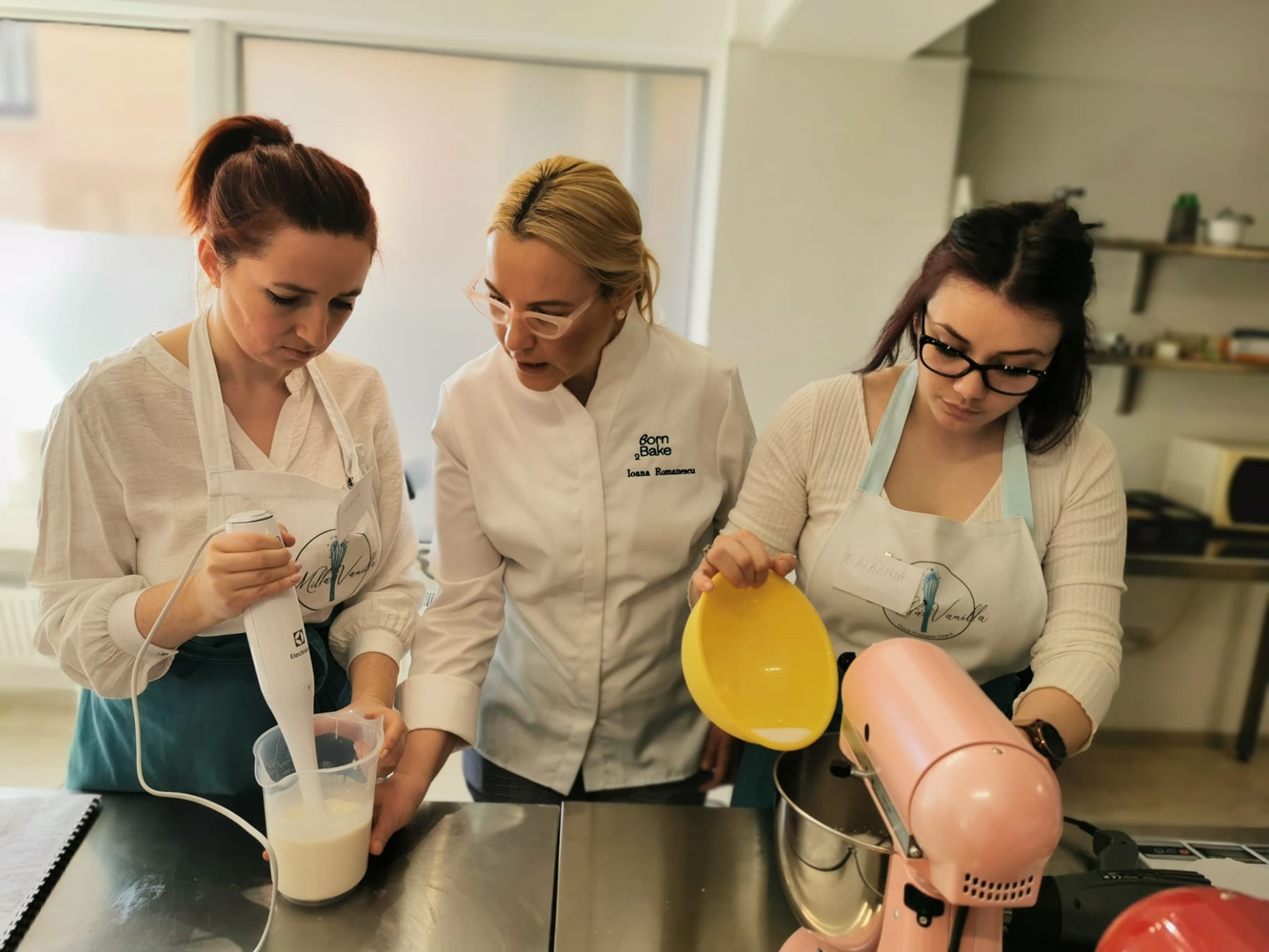 M-a ajutat foarte mult experiența mea de people management din corporație pentru a prelua și implementa modele de lucru care să ajute la a crea un mediu bun de lucru pentru oameni. Spre deosebire de zona corporate, unde procedurile sunt mai ușor de asimilat de la un job la altul, într-un atelier de cofetărie mediul de lucru este mult mai dinamic și mai imprevizibil. Oamenii, chiar și cei cu experiență în domeniu, au nevoie de timp să se acomodeze cu procesele de producție diferite de la un laborator la altul, cu noile sarcini și colectivul.