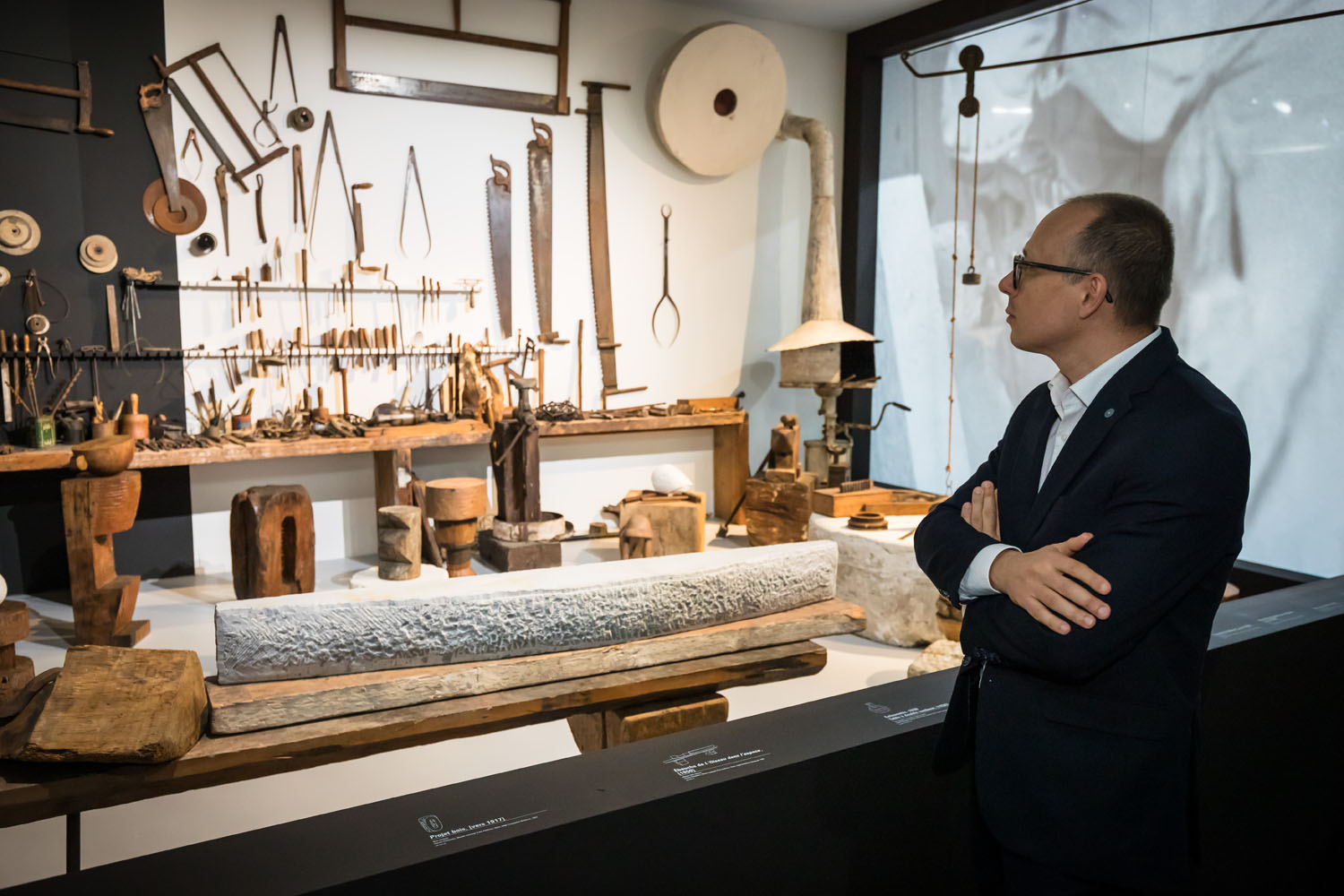 Expoziția retrospectivă reunește o colecție impresionantă, de peste 400 de exponate – sculpturi, fotografii, schițe, filme, materiale de arhivă, unelte și obiecte de mobilier – cărora li se adaugă însuși spațiul în care au fost concepute multe dintre operele expuse: atelierul marelui sculptor.