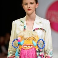 Intre nostalgie optimista si „haz de necaz” usor ironic, noua colectie trateaza relatia complicata, de love-hate, cu trecutul national si memoria personala: de la transformarea celor mai vechi forme artistice de expresie a emotiilor primare (mastile populare ritualice din traditiile pre-romane) in „mastile” digitale contemporane- emoji-urile- la recuperarea kitsch-ului domestic tipic apartamentelor romanesti din anii optzeci in care televizorul trona imperial pe macrameu, devenit un item haute-couture in interpretarea creatoarei. Sau „gluma istorica” absurda a comunismului romanesc sugerata de remixul iconicei steme a Republicii Socialiste Romania, ajunsa un rasu-plansu’ digital, se arata in comunicat.
