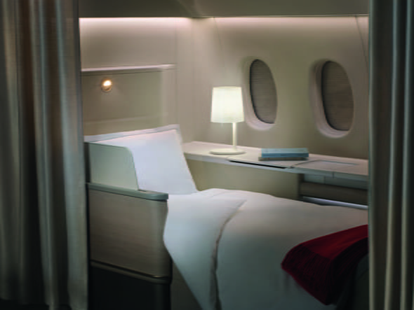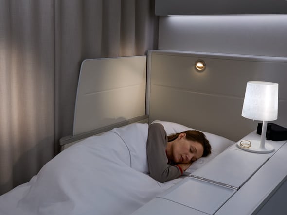 Spatiul cabinei este usor ajustabil, putand fi folosit ca dormitor dar si ca mini-lounge, restaurant sau zona de lucru. Pasagerii pot alege intre intimitatea maxima a unui spatiu de 3mp, tragand draperiile cu care sunt echipate apartamentele sau pot invita un alt pasager pe otomanul asezat in fata scaunului.