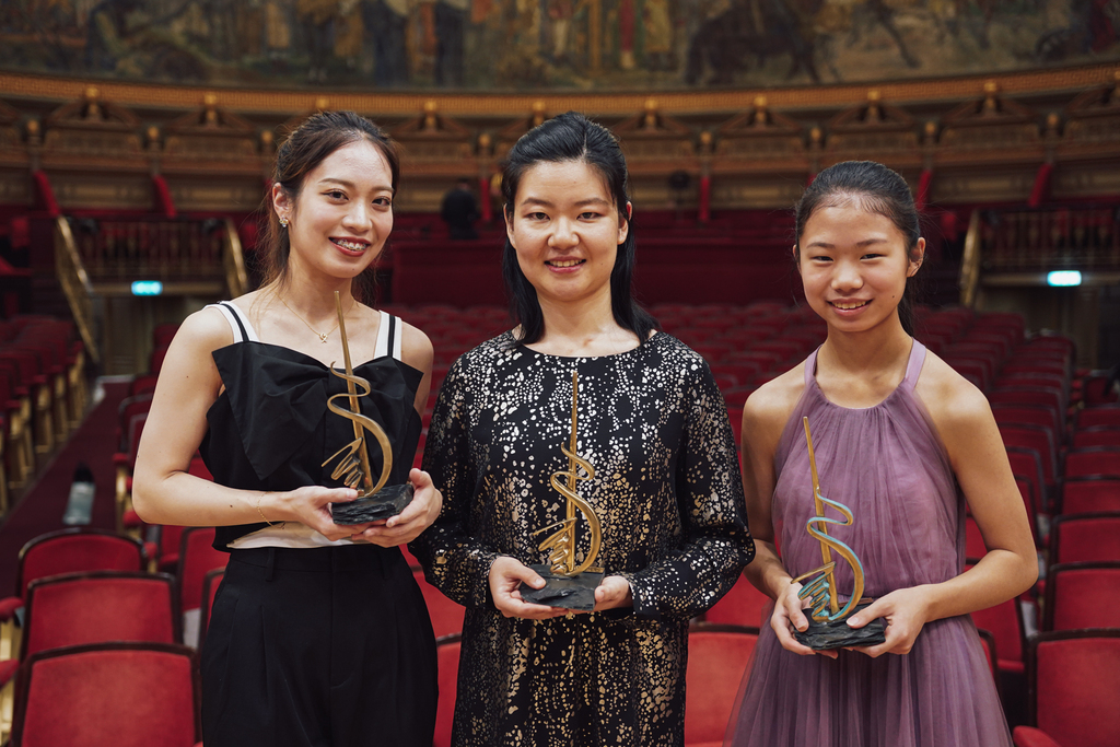 Trofeele Concursului Enescu 2024, oferite celor trei tinere violoniste, sunt realizate de către artistul Mihai Băncilă.