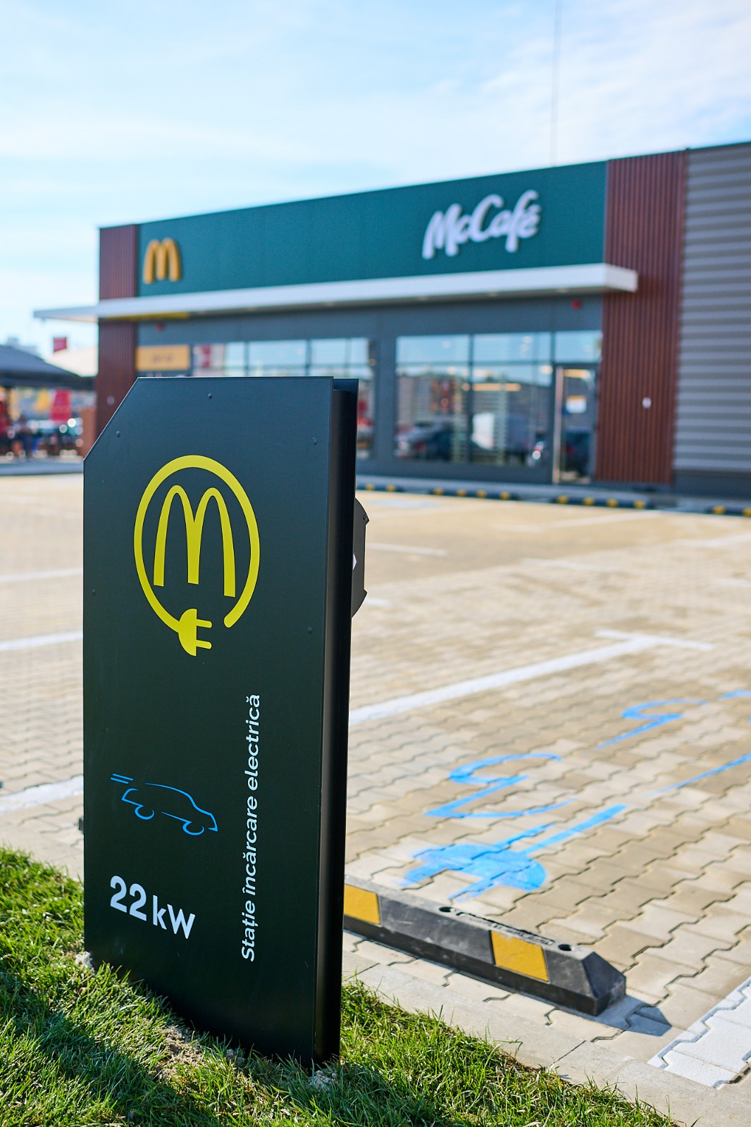Noul restaurant dispune de o stație de încărcare pentru mașinile electrice, coșuri de colectare selectivă a deșeurilor și are integrate panouri fotovoltaice pe acoperiș, pentru consumul propriu.