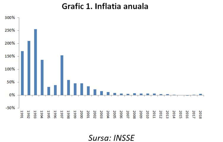 Prin comparație cu situația de acum două decenii, macrostabilitatea sistemului financiar este net superioară. Chiar dacă România înregistrează în continuare cea mai ridicată inflație din UE (4,6% în 2018 și 4,1% în primul semestru din acest an), predictibilitatea dobânzilor, nivelul inflației și stabilitatea monedei naționale (înregistrând cea mai scăzută volatilitate din regiune în ultimii 2-3 ani), asigură mediului de afaceri un context financiar predictibil. În schimb, incertitudinea acum este alimentată de modificările fiscale și juridice impredictibile, într-o scenă politică marcată de schimbări dese care fac imposibilă continuitatea unor reforme structurale. |