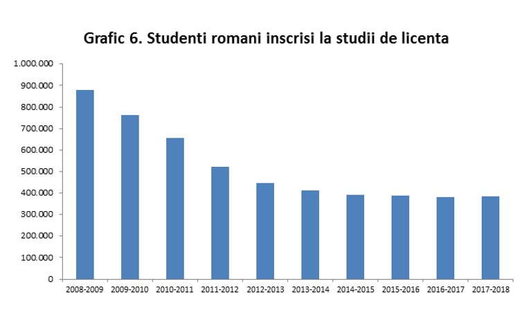 Piața muncii este complet schimbată: deficitul forței de muncă este alimentat de exodul accelerat din ultimul deceniu, aproape 3,9 milioane de români trăiesc în străinătate, după a două mai accelerată rată de emigrare din lume în ultimul deceniu (locul I fiind ocupat de Siria, țară aflată în plin război civil). De asemenea, calitatea forței de muncă scade, în condițiile în care calificările practice (școlile de meserii) se găsesc din ce în ce mai greu, iar numărul românilor înscriși pentru studii de licență scade semnificativ. |
