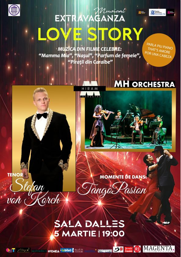 LOVE STORY– Muzică de film cu MH Orchestra, tenorul Ştefan von Korch şi dansatorii Tango Pasion pe 5 martie la Sala Dalles