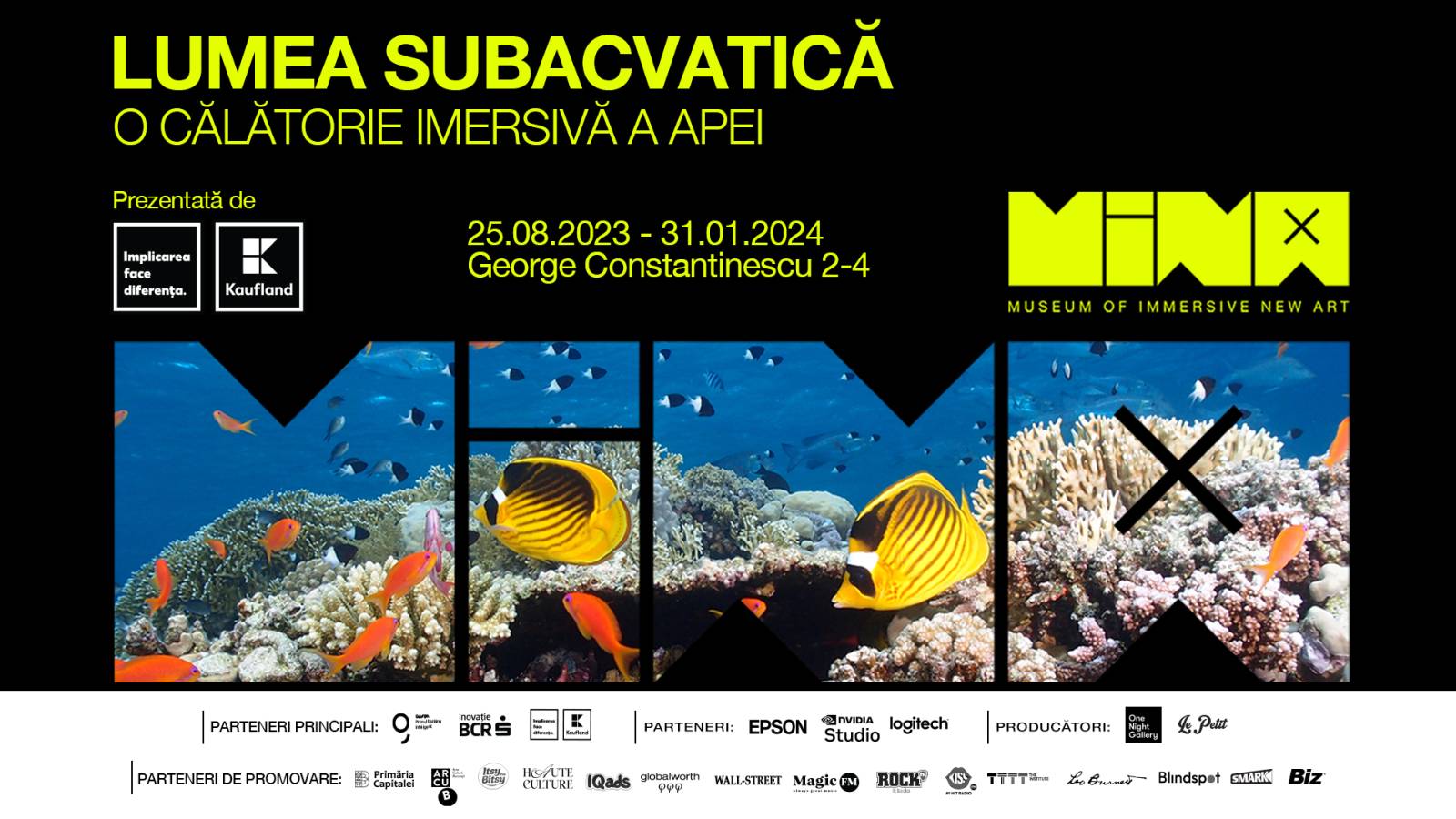 Cel de-al doilea spectacol imersiv expus la MINA, Lumea Subacvatică, prezentat de Kaufland România, este o incursiune educațională în biodiversitatea apei, marcată de conștientizarea modului în care putem contribui la o lume mai curată și la protejarea speciilor. Proiectul este realizat de studioul Collider Visuals & Pixels Reality și producătorul muzical, Costav Ivanov. Firul narațiunii a fost gândit anume pentru a introduce componenta de sustenabilitate în educația celor mici, un aspect care se regăsește și la anumite instalații din cadrul MINA Kids.