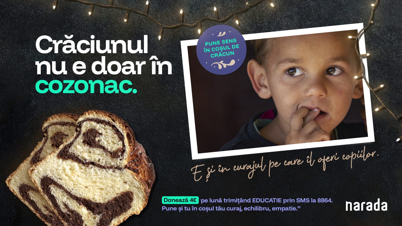 Campania „Punem sens în coșul de Crăciun” se desfășoară în perioada 1–31 decembrie, la nivel național, și propune o schimbare de paradigmă în modul în care înțelegem generozitatea de sărbători. În timp ce companiile achiziționează, în mod obișnuit, mii de coșuri pline cu produse de sezon, Narada introduce „coșul cu sens”: un coș fără dulciuri și obiecte consumabile, dar plin cu valori precum curaj, empatie, voce și gândire critică, oferite copiilor prin programele organizației și prin intervențiile concrete și practice pe care Narada le desfășoară acum în școli, în cadrul campaniei Siguranța care nu se vede.