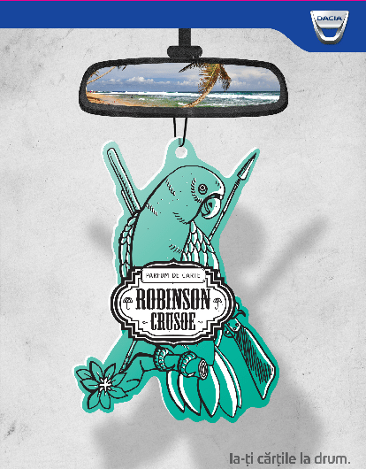 La standul Dacia a fost lansata o colectie de odorizante de masina inspirate de diverse carti din literatura universala si nationala si care le ofera cititorilor oportunitatea de a avea parfumul cartii preferate in fiecare zi, in masina. Conceptul a fost declinat si in social media. Printre aromele odorizantelor propuse si votate de catre fanii paginii de facebook Dacia s-au numarat: iarba pentru “Amintiri din copilarie”, vanilie pentru “Hansel si Gretel”, ceai pentru “Alice in tara minunilor”, cocos pentru “Cartea junglei”.