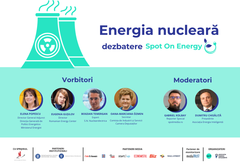 „Viitorul energiei nucleare în România trebuie să ne preocupe, prin urmare în cadrul acestei dezbateri Spot On Energy vom aduce în discuție aspectele esențiale legate de siguranța, eficiența și sustenabilitatea utilizării nucleare în mixul energetic al țării noastre. Această dezbatere va fi un dialog constructiv prin care vom crea o oportunitate valoroasă pentru invitați și participanți de a explora perspectivele reale și provocările concrete asociate cu extinderea energiei nucleare în România în beneficiul publicului și al viitorului energetic al țării”, declară Gabriel Kolbay, reporter Spotmedia.ro și comoderator al dezbaterilor Spot On Energy.
