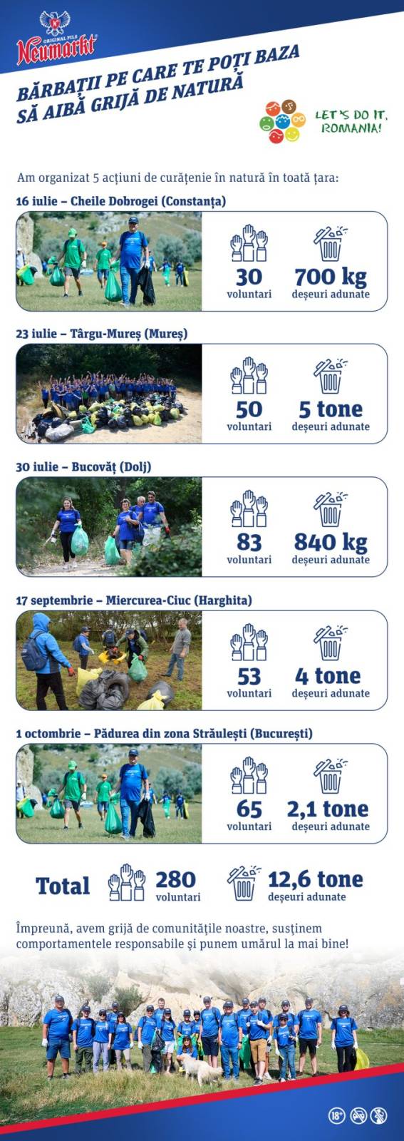 „Nimic nu este mai important decât ceea ce lăsăm în urma noastră. Ne bucurăm că am găsit în Neumarkt® un partener de încredere pentru Let’s Do It Romania și că împreună am curățat atât de multe zone verzi vara aceasta. Le mulțumim tuturor voluntarilor participanți, acțiunile lor chiar contează.”