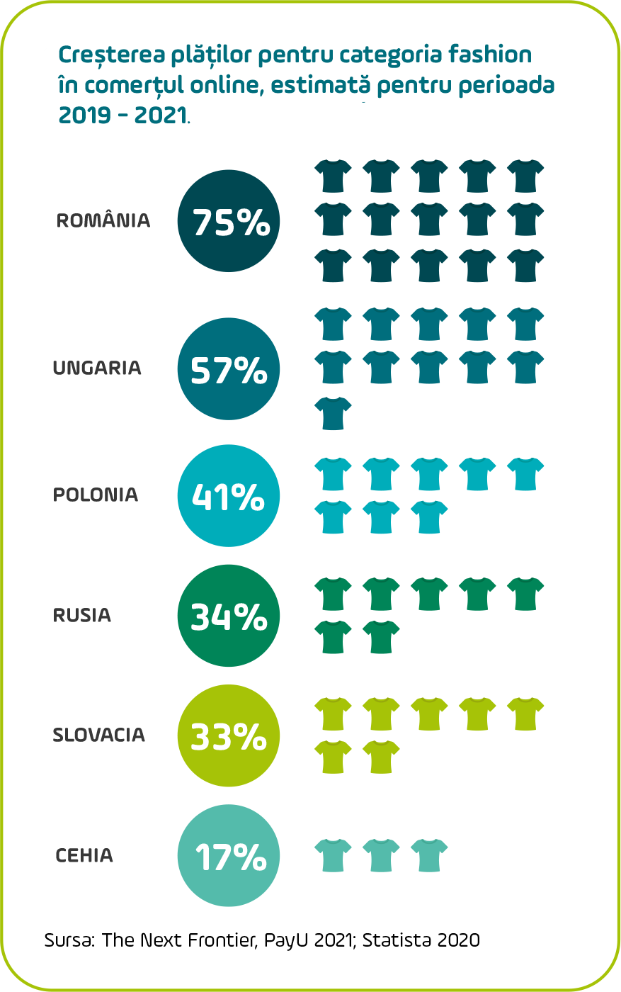 „Ne așteptăm ca până la finele lui 2021 bugetul pentru cumpărăturile online în categoria fashion să crească cu 75%, trecând pentru prima dată de 1 miliard de dolari. De asemenea, veniturile vor avea o creștere anuală de 10% în perioada 2021 – 2025, ajungând astfel la un volum de piață de 1,6 miliarde de dolari până la finalul anului 2025”, a completat Elena Gheorghe, Country Manager, PayU România.