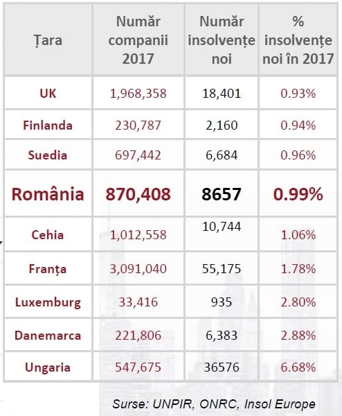 „Piața de insolvență din România este una matură, comparabilă cu cea a Marii Britanii (0,93%) sau a Franței (1,78%) din punctul de vedere al companiilor intrate anual în insolvență raportat la numărul total de companii. În ansamblu, în ultimii 10 ani, aproape 179.000 de companii au intrat în insolvență, în timp ce peste 800.000 au fost înființate”, a declarat Vasile Godîncă-Herlea, CEO CITR, într-o conferință de presă.