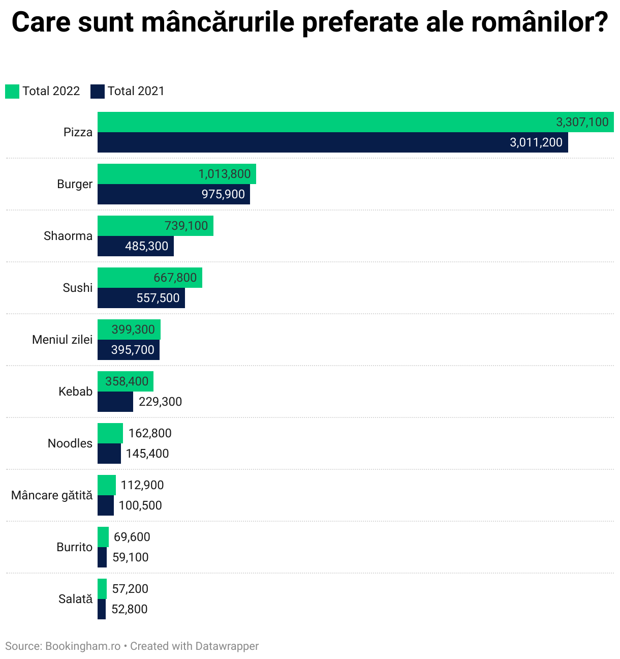 Pentru studiul de față, echipa platformei de rezervări online Bookingham a analizat trendurile de căutare ale românilor în 2021-2022 în materie de preparate, aplicații de food delivery și branduri de fast food. Datele au fost extrase cu ajutorul Keyword Planner, atât pentru studiul de față, cât și pentru studiul anterior din 2019-2020. Au fost analizate atât cuvintele și frazele folosite de români, cât și numărul total de căutări pe food delivery, în română și engleză.