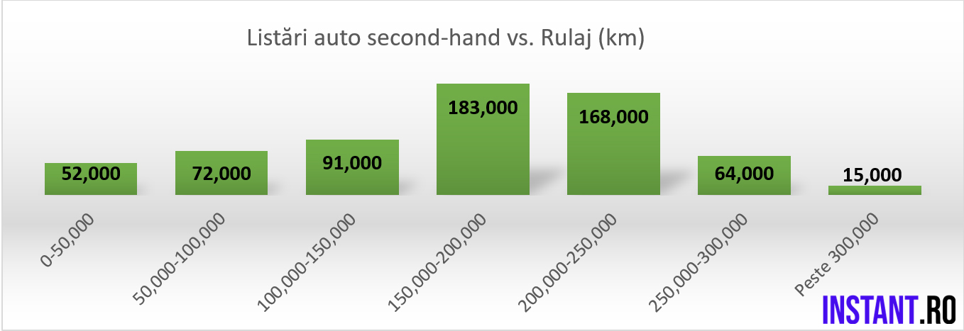 Românii schimbă mașina cel mai frecvent în intervalul 150.000-200.000 de kilometri parcurși, potrivit analizei Instant.ro ce a luat în calcul un volum de 645.000 de autoturisme rulate, produse în intervalul 2010 – 2023 și listate cu intenție de vânzare în ultimii 5 ani.