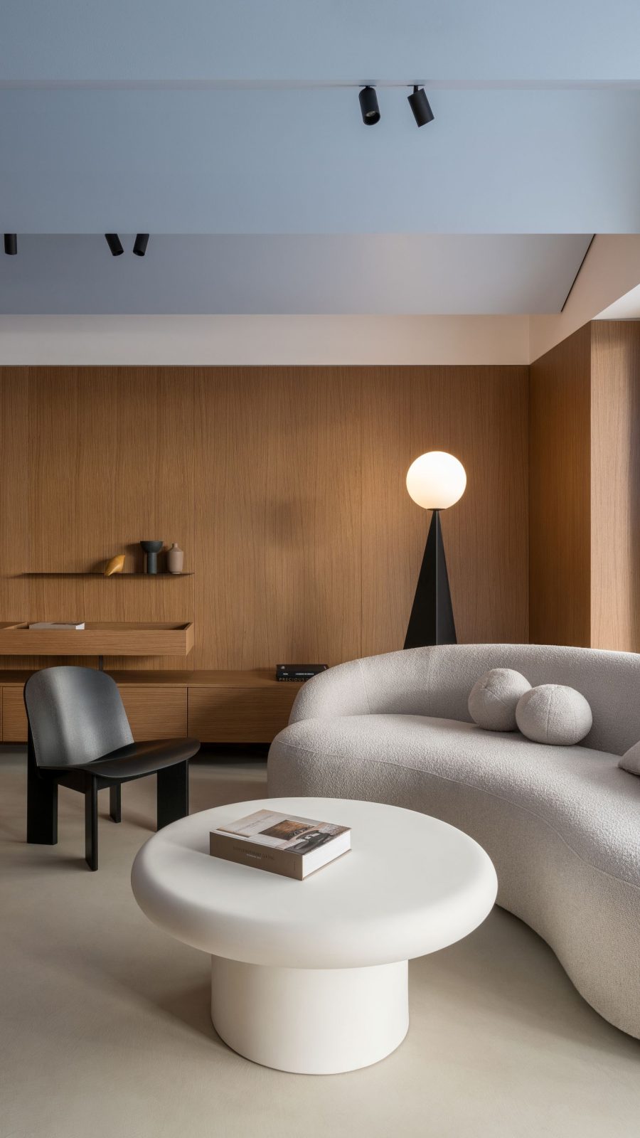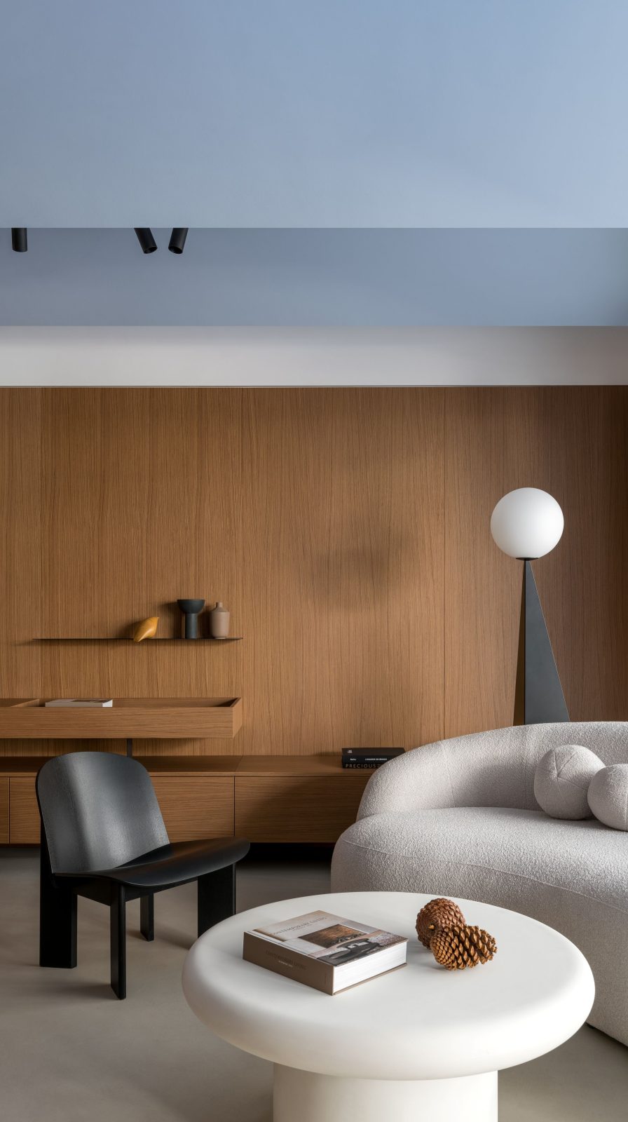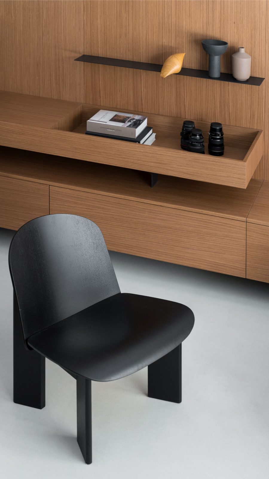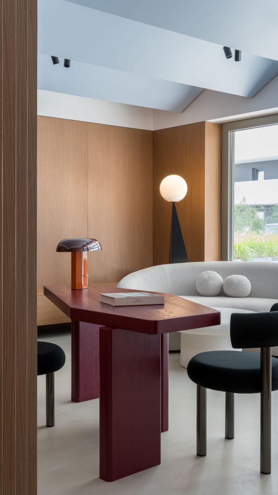 Prin compoziția sa echilibrată și detaliile perfect controlate, spațiul showroom-ului transcende funcționalul și devine o experiență arhitecturală în sine. Plafonul angular –principalul punct de interes al compoziției, dar și portalurile realizate din lamele verticale tratate cu furnir cald și piesele de mobilier realizate la comandă creează un joc sofisticat de texturi și volume, completat de o paletă cromatică elegantă și o lumină care pune în valoare detaliul. Întreg spațiul este o expresie a designului coerent, matur, în care estetica și funcționalitatea se întâlnesc într-un limbaj unitar.