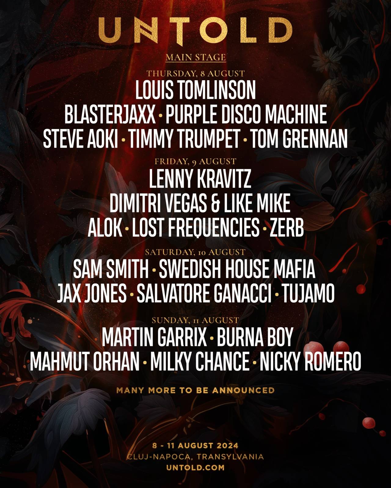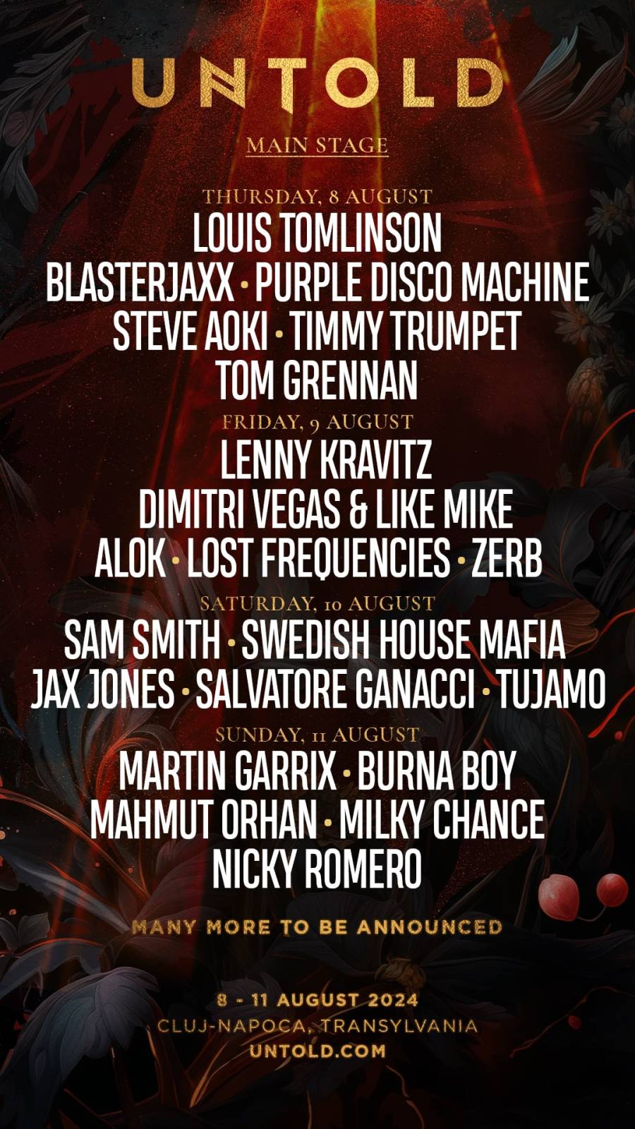 JOI, 8 AUGUST, fanii UNTOLD se vor bucura de show-urile unor artiști și DJ care vor ajunge pentru prima dată pe Cluj-Arena: Louis Tomlinson, Tom Grennan, alături de Purple Disco Machine și duo-ul Blasterjaxx.