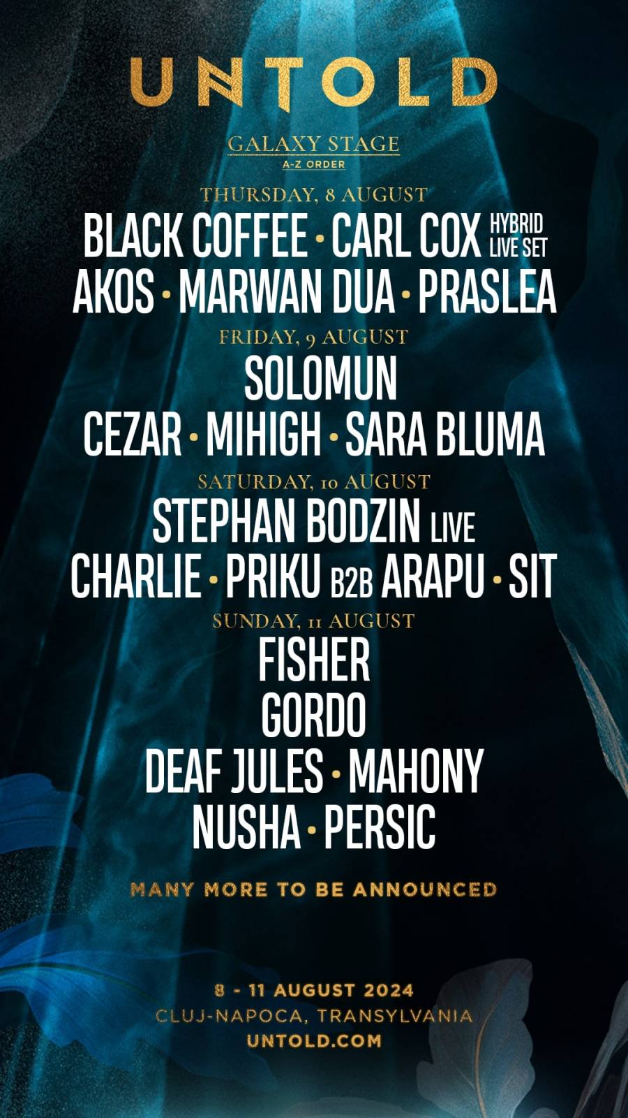 Alături de aceste nume mari, în a treia zi a festivalului, pe Cluj-Arena vor ajunge Salvatore Ganacci, Jax Jones, Tujamo, Jaxomy, Arcadia by Fehrplay. Organizatorii UNTOLD au pregătit un show special cu Marius Moga & Friends.