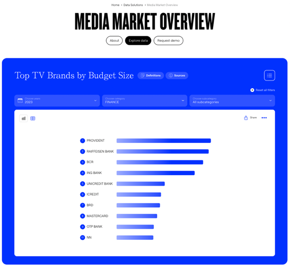 Dataintelligence.ro oferă profesioniștilor din marketing o serie de instrumente utile. De exemplu, pot afla care este brandul cu cea mai mare investiție în publicitate TV în categoria Finance.