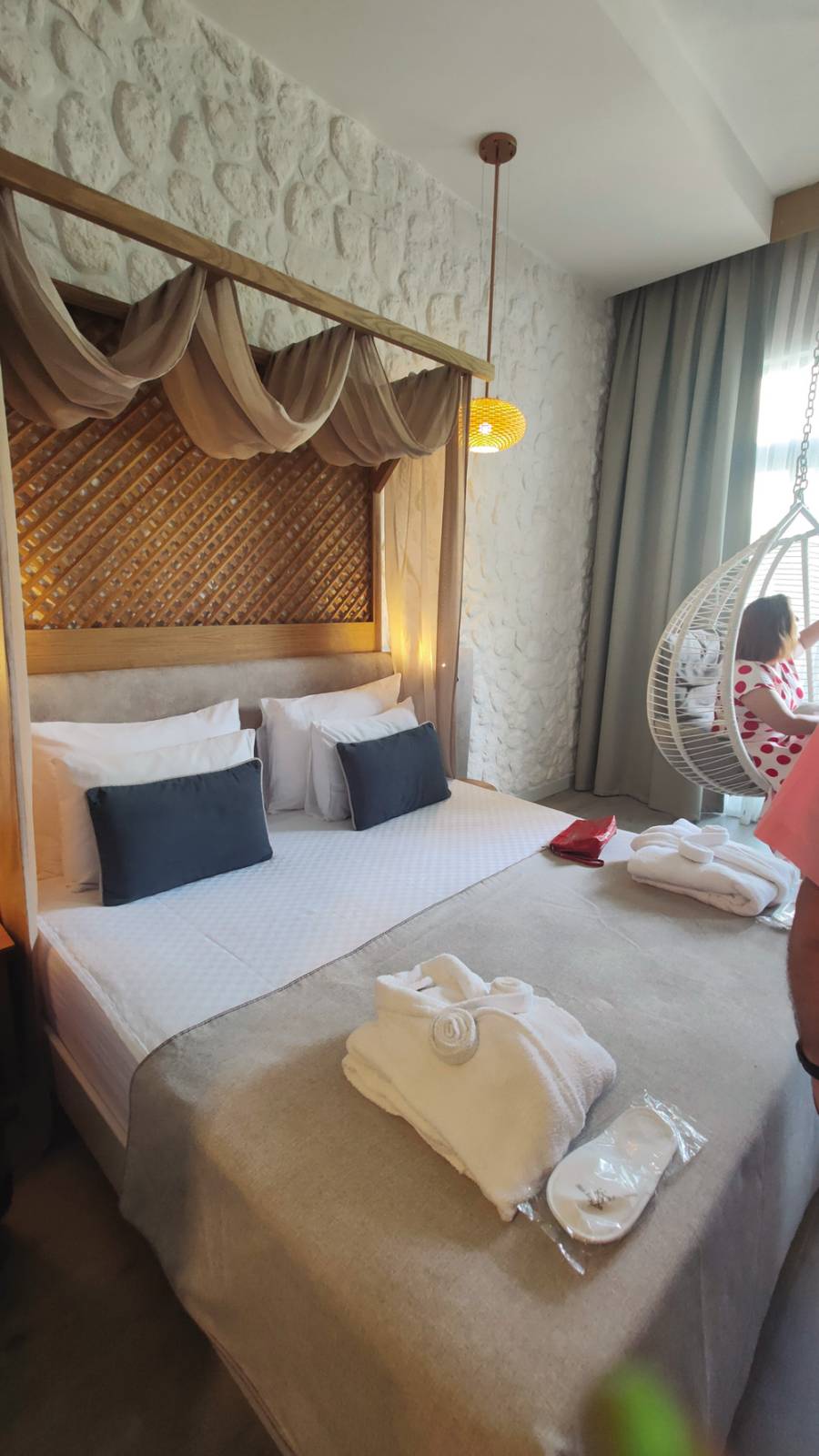 Hotelul Side Royal Palace Hotel & Spa are trei tipuri de camere – standard, family (două dormitoare cu baie și cu ușă între ele) și swim-up rooms, camere cu acces direct la piscină, care sunt și cele mai scumpe.