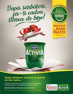 Reading Time: 3 minuteDe sarbatori te-ai bucurat din plin de rasfaturi culinare si de cadouri care te-au incantat: de la mese bogate alaturi de cei dragi, pana la rochia noua la care visai de mult timp. Activia iti propune sa te bucuri in continuare si te invita sa iti faci cadou starea de bine in fiecare zi.