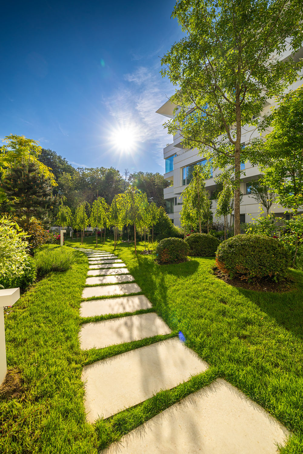 Natura este omniprezentă, clădirile fiind înconjurate de pădure, dar Stejarii Collection are și nu mai puțin 11.000 de metri pătrați de parcuri și grădini botanice, oferind o varietate de peste 150 de specii de plante. Și nu o poți scăpa din ochi, fiindcă fiecare apartament din complex are o panoramă de 270° către pădure. La etaj, asta înseamnă terase extinse, în timp ce la parter fiecare apartament are acces la o grădină proprie.