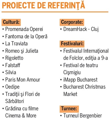 Pentru mine, cea mai mare satisfactie este atunci cand dupa un eveniment reusit citesc multumirea si mandria in privirile clientului si ale echipei de organizare. Nu este un lucru usor sa obtii multumirea tuturor celor implicati, stiut fiind faptul ca nota de subiectivism in aprecierea calitatii unui spectacol este foarte mare. Si totusi, am reusit de-a lungul celor 20 ani sa obtinem un lung sir de evenimente fara cusur.