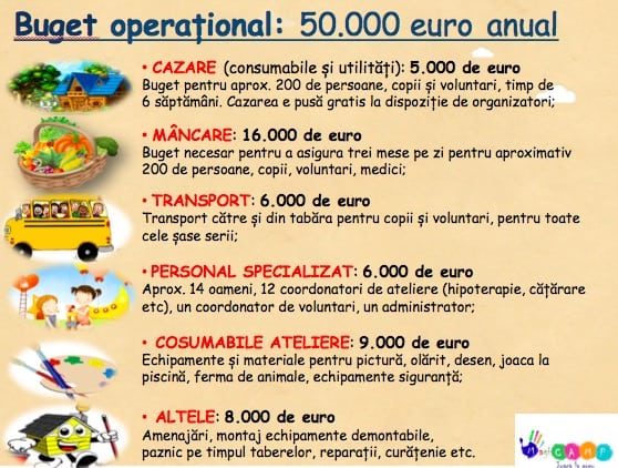 Tabara plina de magie, aventura si poveste, pentru 100 copii bolnavi de cancer, are nevoie de 5000 euro pentru cazare, 16.000 euro mancare, 6000 euro transport, dar si alte cheltuieli.